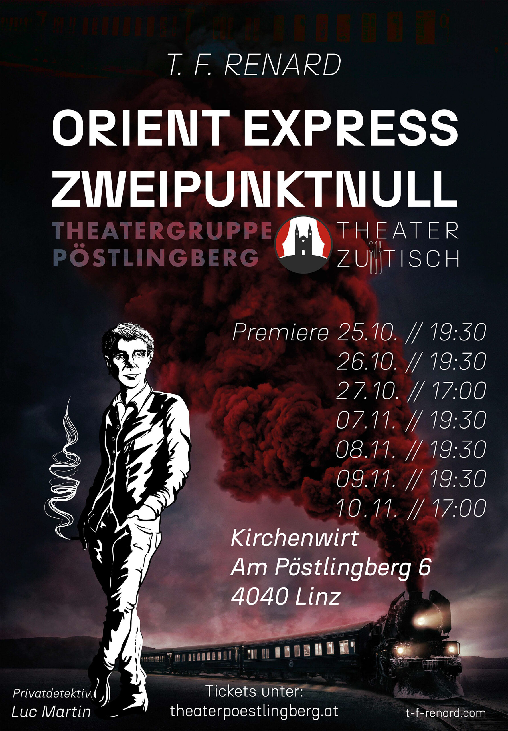 Zum Inhalt des Stücks: Erstmals führen wir einen Krimi auf, in welchem unser äußerst gefinkelter Detektiv, Luc Martin, auf der Suche nach der Lösung des Falls sein wird. Schauplatz ist der allseits bekannte Orientexpress, dessen Mythos Anlass genug gegeben hat, dort einen Kriminalfall zu inszenieren.